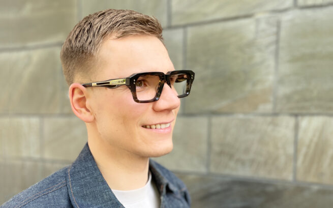 Das Brillenlabel TAVAT hat speziell für dieses Brillenmodell ein markantes Scharnier entwickelt. Das Zahnrad-Design besteht aus 5 Komponenten. Die sternförmigen, teflonbeschichteten Torx®-Schrauben sorgen für zusätzliche Stabilität. Jeder Rahmen dieser Kollektion ist aus edlem 8-mm-Acetat gefertigt und facettiert, wodurch er seinen besonderen Charakter erhält. Limited Edition. Handgefertigt in Italien. Weitere Informationen zur SoupCan-Kollektion von Tavat Eyewear…